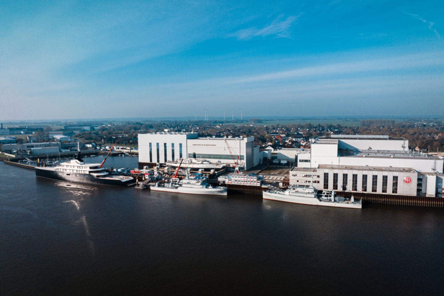 Since the foundation of the shipyard more than 115 years ago, Abeking & Rasmussen (A&R) has built 6,500 sailing and motor yachts, naval vessels, and special ships. The shipyard, which car-ries out development, design and construction in-house in Lem-werder, supplies customers all over the world. A&R can build yachts and ships up to 125 m in length. Last year, the largest yacht to date was delivered to its owner. The 118-m yacht, named »Liva°«, is an elegant beauty with a striking black hull.