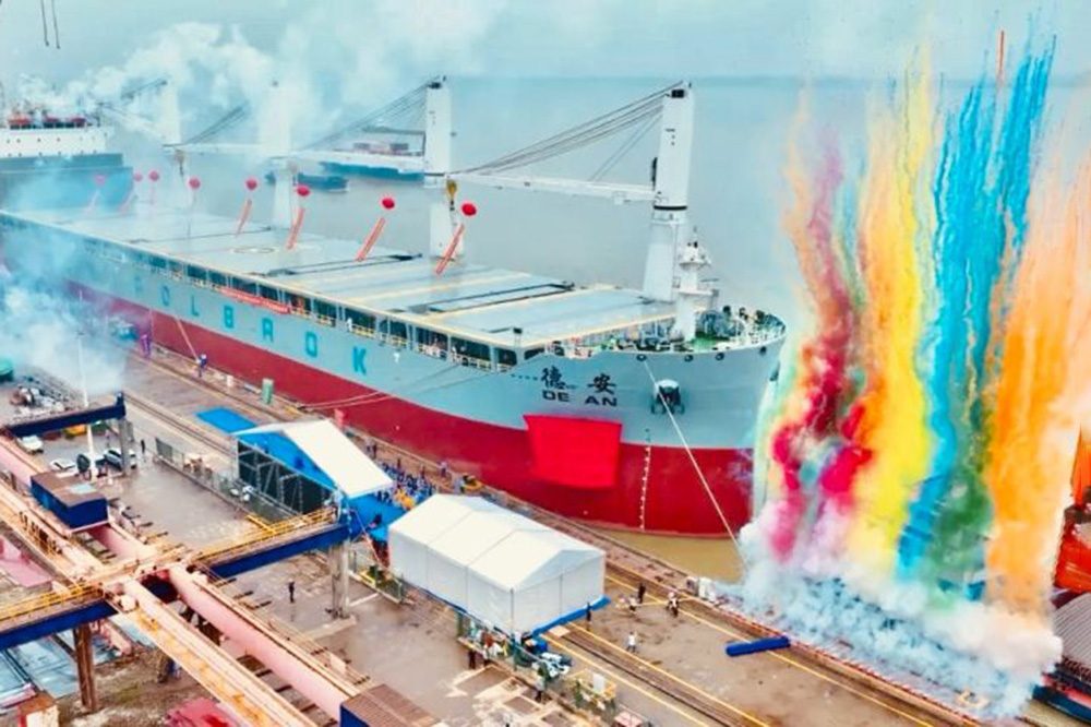 And the Chinese-Polish cooperation is now becoming active again in this size range: according to reports, a total of six 60,800-tdw vessels have been ordered in recent days. The 199 m long ships, each with three 200 t cranes, large cargo holds and a deck strength of 4.5 t/m² as well as the bridge superstructures in the foreship area, will be built by the Taizhou Sanfu shipyard. Delivery planned from Q4 of 2027. This order is also based on the “new” demand from the wind energy sector, according to reports.