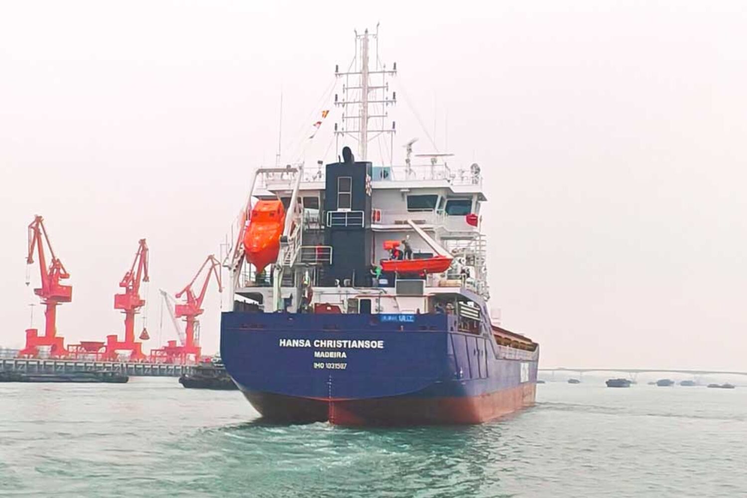 The Portugal-flagged “Hansa Christiansoe” was handed over by the Jiangsu Dajin Heavy Industry shipyard on Wednesday. According to L&B Managing Director Torben Kölln, this is a 10 m longer design of a proven ship type. The carrying capacity has been increased from 5,200 tdw to 5,900 tdw.