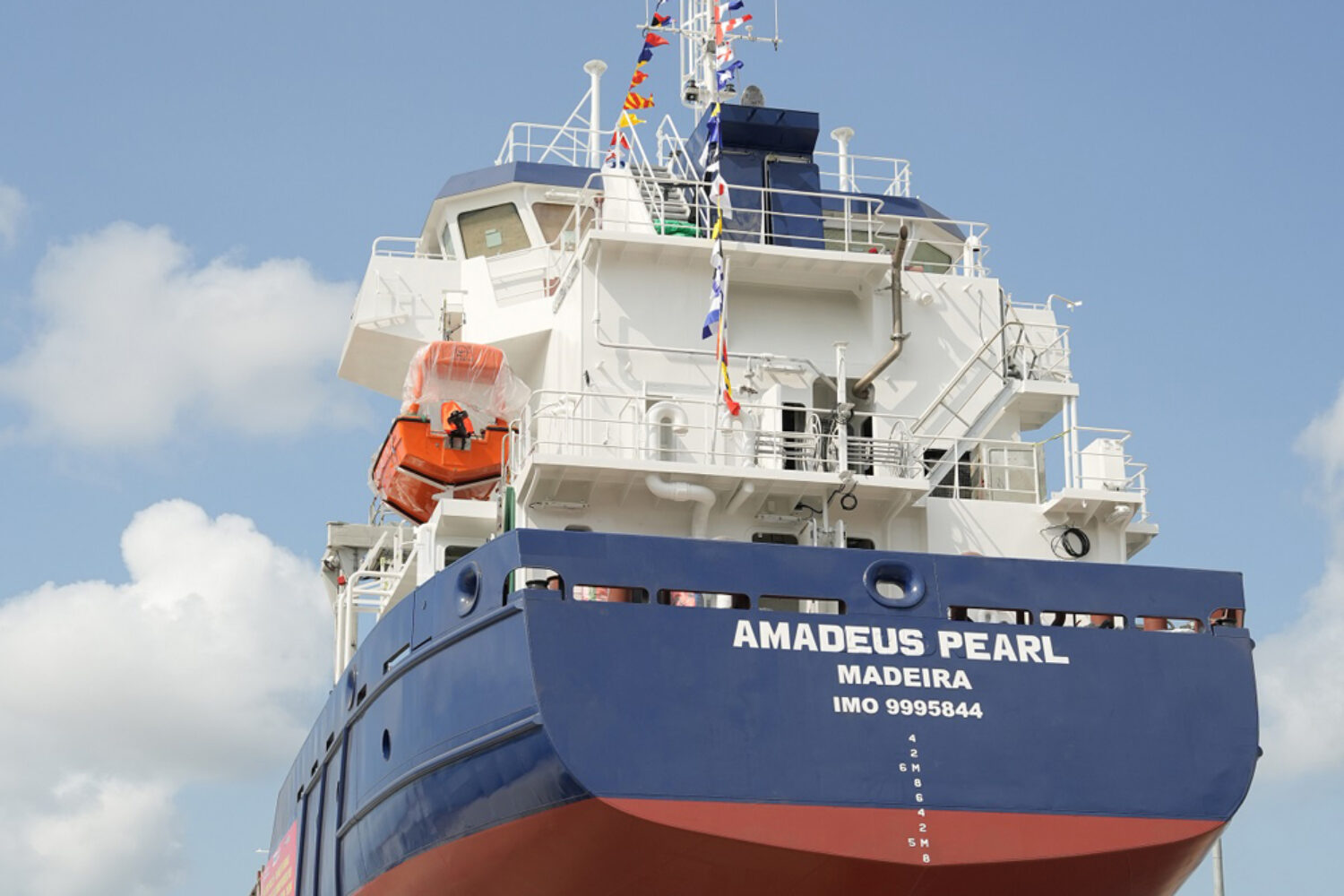 The freighter was built at Ba Son Shipyard in Vietnam. After completing its maiden voyage to Europe, the “Arion” will enter into a charter contract with shortsea shipping company Amadeus Schiffahrt, a subsidiary of Duisburg-based shipping company HGK Shipping. She will then sail there as the “Amadeus Pearl”.